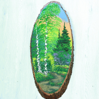 Основное преимущество этой картины - в ее необычности и оригинальности. Ведь вместо обычного холста или картонной основы, здесь использован спил дерева. Это придает работе особую привлекательность и неповторимость. Каждый спил имеет свою уникальную текстуру и рисунок, что делает каждую картину уникальной.